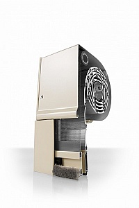 Skrzynka Okrągła skrzynka o wysokości 138 mm i 165 mm z klapą rewizyjną do celów serwisowych – zapewniająca nowatorski wygląd w połączeniu z elewacją budynku